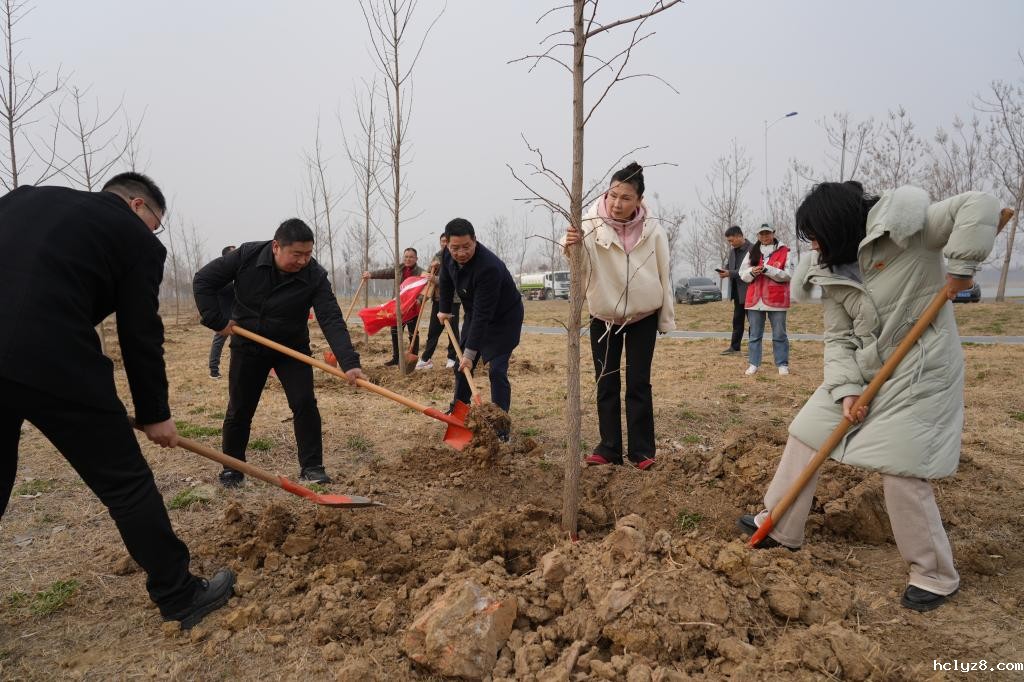 活动现场,党员们行动迅速,积极投身到植树实践中。三人一组、五人一群,分工协作、密切配合。挥锹铲土、扶树正苗、提水浇灌,各个环节衔接有序,忙而不乱。大家热情高涨,干劲十足,现场呈现出一片热火朝天的劳动景象。经过一个小时的辛勤劳动,数十株新栽树苗在土地上“安家落户”,整齐排列,在微风中摇曳生姿,焕发出勃勃生机。